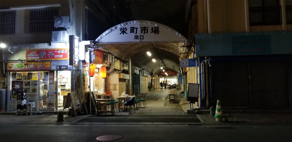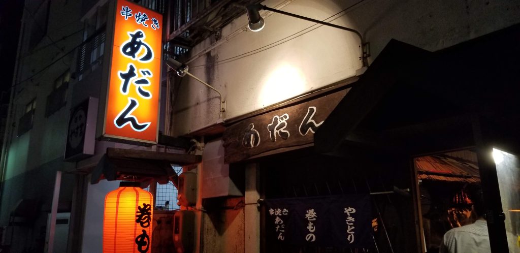 続いて、今夜のお店は「栄町市場」の中にある「串焼きあだん」です。
